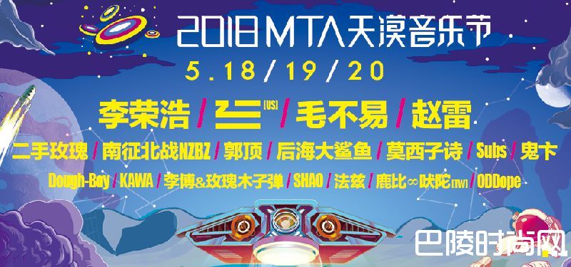 MTA 飞船已确定于5.18至5.20降落天漠,带着50余组音乐人上演风格迥异的音乐盛典,分布于 Mustafar、Naboo、Supernova 三大舞台的他们,以摇滚、电子、嘻哈、民谣等数不尽的姿态,带领听者穿梭于现在与未来。