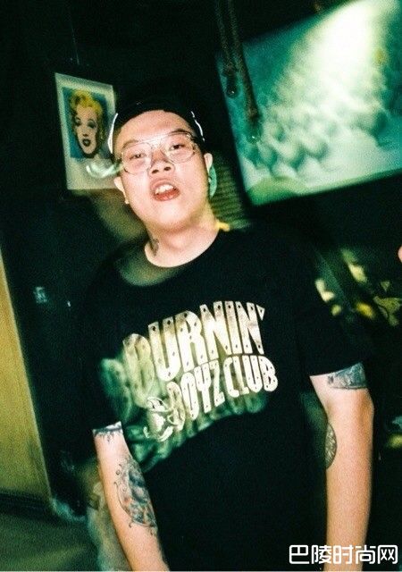 但别看他一副嘻皮笑脸的孩子形象,其实Blow Fever身上的刺青也多到足以展现十足的男人味,手臂及胸上都有许多图案,除了袖套他较常穿着Oversize长袖、外套来遮掩。