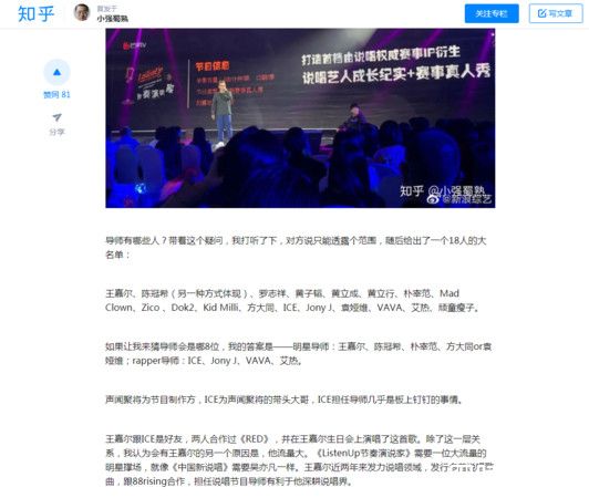 《ListenUp》早在2016年就开始制作第一季,不少《中国新说唱》的知名rapper都曾参加过此节目,包括艾佛杰尼、VaVa、派克特,VaVa更是夺得2016年总冠军。