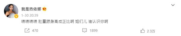 陈芳语这番言论在两岸引发不小讨论,她不小心说溜嘴该室友的特征,新疆人、似乎有185公分,有网友根据比对猜想不让人洗澡还骂人的室友,就是当时和陈芳语同寝的热依娜(新疆人,180公分),对此热依娜当晚在微博发文,语气直白的表示:啧啧啧啧,肚量跟身高成正比啊,姐们儿,谁认识你啊。疑似回应陈芳语,掀起大批网友热议。