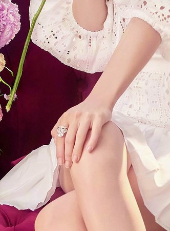 结婚6年的Angelababy曾在IG晒婚戒,该款戒指是CHAUMET的JOSEPHINE AIGRETTE IMPERIALE铂金款式戒指,由1颗5.53克拉的梨形切割钻石,加上73颗明亮式切割钻石所组成,要价1000万人民币。