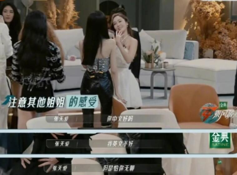 网路曝光一段画面,只见张天爱直接走向Jessica,一开口就问对方:妳中文好吗?洁西卡也立刻摇摇头,张天爱坦承自己虽然英文不好,但怕洁西卡一个人待着会无聊特别来找她聊天,洁西卡也覆诵了一次无聊,似乎在绞尽脑汁思考这个词的意思。